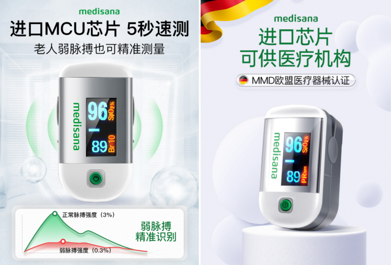 在血氧监测领域,针对老年人及脉搏微弱者等慢病高危人群的需求,medisana马德保康推出MD300CI216R指夹式脉搏血氧仪、MD300C22血氧仪、A0J-70C血氧仪等系列产品。产品采用进口芯片优化设计,5—8秒即可快速精准测量血氧饱和度、心率及呼吸率,测量精度超越国际标准,有效规避了传统设备测量速度慢、精度不足的痛点。同时,避光指仓设计减少环境光干扰,轻量化佩戴体验贴合老年人使用习惯,无需专业操作即可完成自测,完美适配居家慢病监测场景,帮助慢病患者实时掌握自身健康指标,为病情防控提供科学依据。