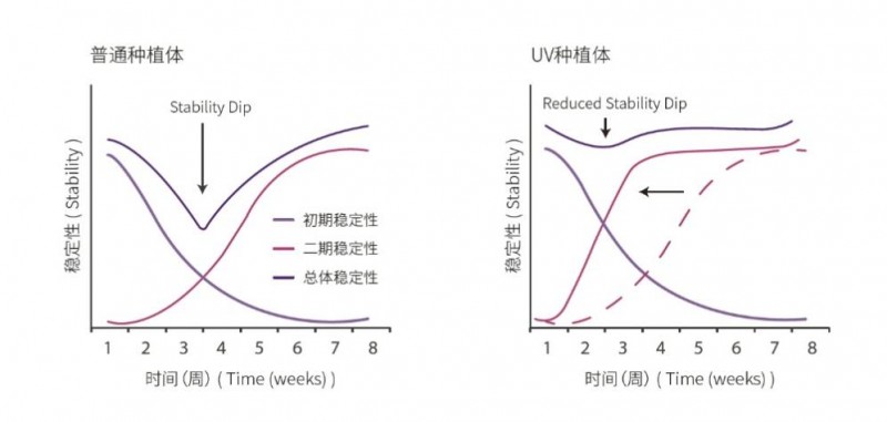 核心技术:UV紫外线照射,种植体表面抗老化,快速骨结合