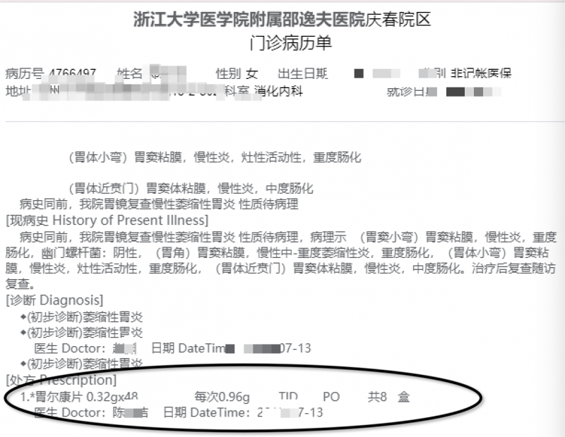 在漫长的求医问药过程中,患者几经辗转,来到了浙江省邵逸夫医院。在这里,医生为她开具了家和胃尔康片作为核心治疗药物。据悉,胃尔康片是一种中药复方制剂,由马钱子碱、天花粉、党参、山楂、乌梅、广木香等多种药材组成,专门用于治疗慢性萎缩性胃炎脾胃阴虚证。