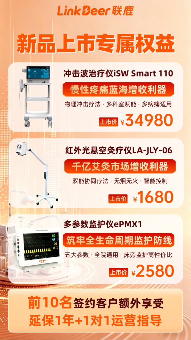 从冲击波治疗仪布局慢性疼痛蓝海,到多参数监护仪夯实生命支持基础,再到红外光悬空灸疗仪深耕中医理疗赛道,联鹿医疗的每一款产品都始终围绕民营医院的核心需求展开。而其布局,远不止于此。
