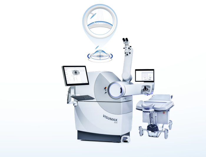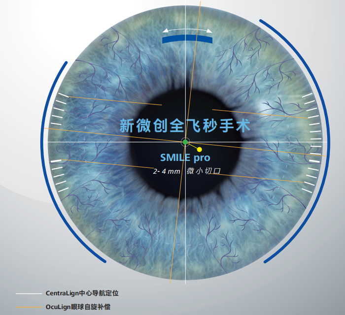 新一代机器人全飞秒VISUMAX 800手术设备,搭载全新升级的SMILE pro微创手术系统,将全飞秒激光手术时间缩短至10秒以内,并通过智能机器人辅助系统(如CentraLign定心导航、OcuLign眼球旋转补偿)显著提升手术精准度,为近视患者带来更加先进、精准、安全的治疗选择。
