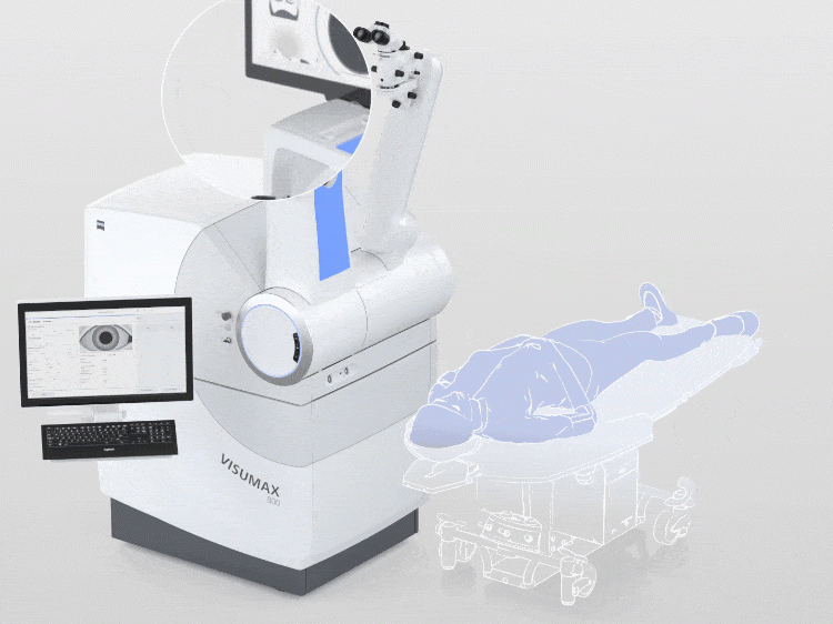 VISUMAX 800独创的双机械臂设计,激光臂与显微镜臂灵活切换,360°全方位操作,实现中心定位,提高了手术操作的便捷性,还在硬件上为手术安全提供了一重保障,术中能更加稳定、灵活地应对各种状况。手术时患者只需平躺,无需主动配合,设备“三维跟踪”可智能观测头部位置,术中还有八种光情绪安抚灯随心选取,整个手术过程更加舒适。