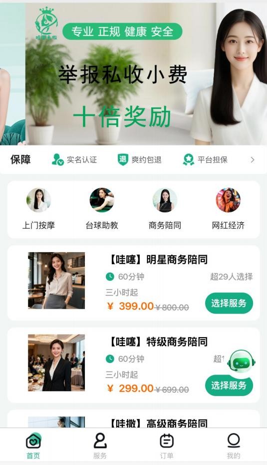 1. 安全可靠,双重认证:所有服务提供者均通过严格资质审核与背景调查,服务过程有保障,交易由平台担保。