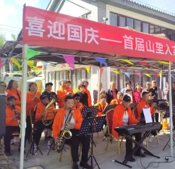 除了精彩的书画展示与创作,现场还安排了乐队歌唱表演。乐队以“歌颂祖国、赞美家乡”为主题,演唱了《我和我的祖国》《歌唱祖国》《家乡的云》等经典歌曲。悠扬的旋律、深情的演唱感染了在场每一位观众,大家纷纷跟唱,歌声在庭院中回荡,将国庆的喜庆氛围推向顶点。艺术家曾春玲献歌一曲《故乡是北京》,赢得现场阵阵喝彩。,游客王先生表示:“这个国庆来山里人家太值了,既能看名家书画,又能听经典歌曲,还能感受乡村的宁静,这种文化与自然结合的体验特别棒。”