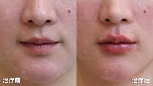 治疗后:唇部饱满、丰盈,唇纹减淡,唇形得到明显改善,唇部更加立体
