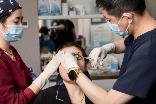 活动现场,海峡整形的刘大庆主任和雷根娥主任为在场的医师们进行了眼周注射实操演示。他们精湛的针技,旨在帮助求美者重塑眼周美学,让眼睛焕发出青春光彩。
