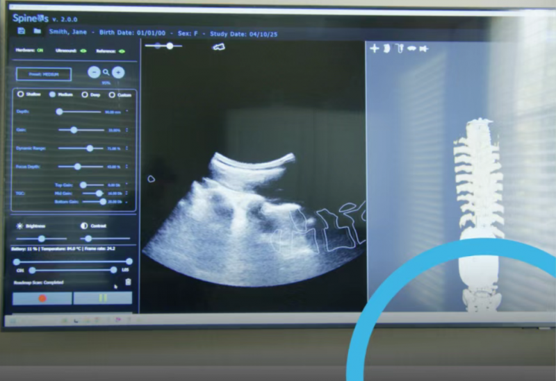 以往,因超声波无法有效穿透骨骼,并且容易从探测器反弹,因此使用超声手段无法直接重建3D骨骼。为了探索3D脊柱超声的成像技术,Verdure imaging公司与加拿大金斯顿皇后大学的研究者们将目光投向了“通过追踪技术将2D超声图像增强为更为精准的3D渲染图像”这一思路。最终,在OptiTrack的加持下,他们找到了绝佳方案。