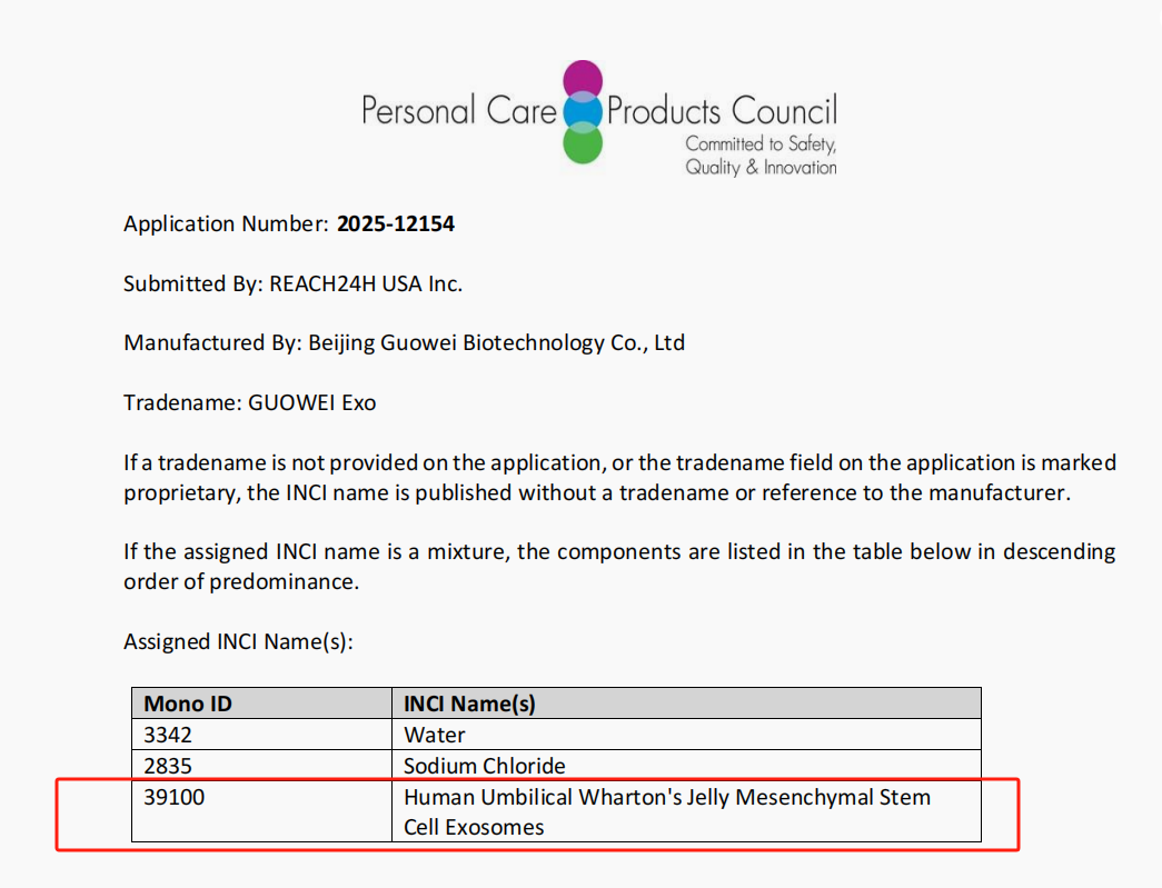 国卫生物外泌体获国际化妆品INCI成分备案